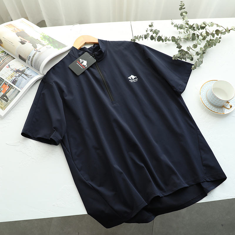 Snow Mountain Series Little crowdsourced tides Summer men's half-door lapels Loose Speed Dry Sports Short Sleeve T-shirt