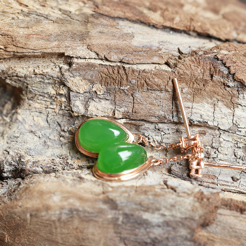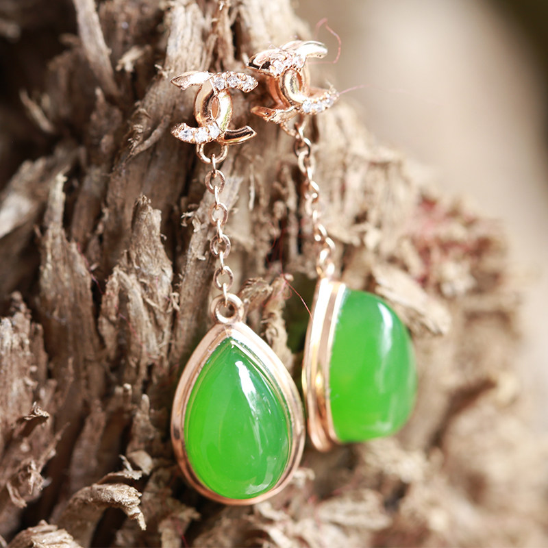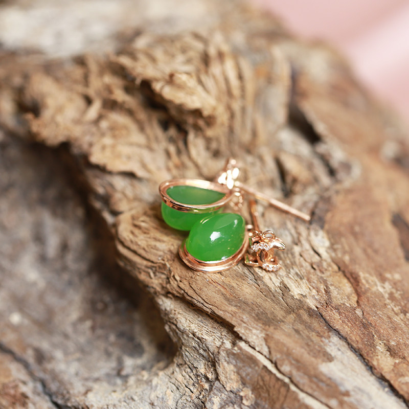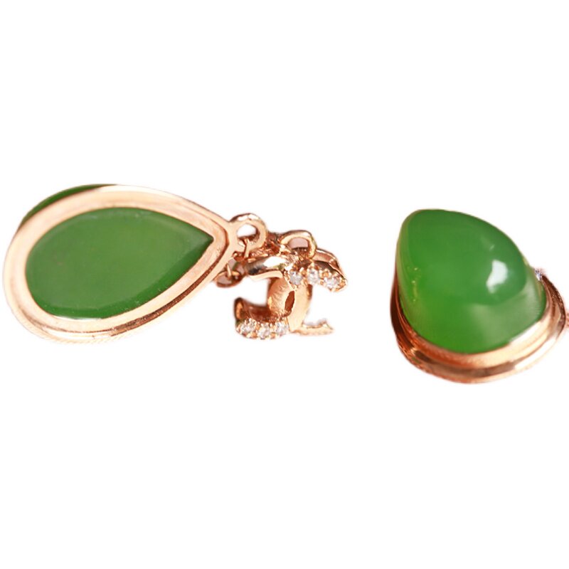 And Tian jade earrings 18K gold bi jade apple cider green natural earbuke and field Bite jade earnchpin jade earring