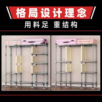 Reinforced simple wardrobe, steel pipe thickening and thick steel frame cloth wardrobe storage artifact is strong and durable