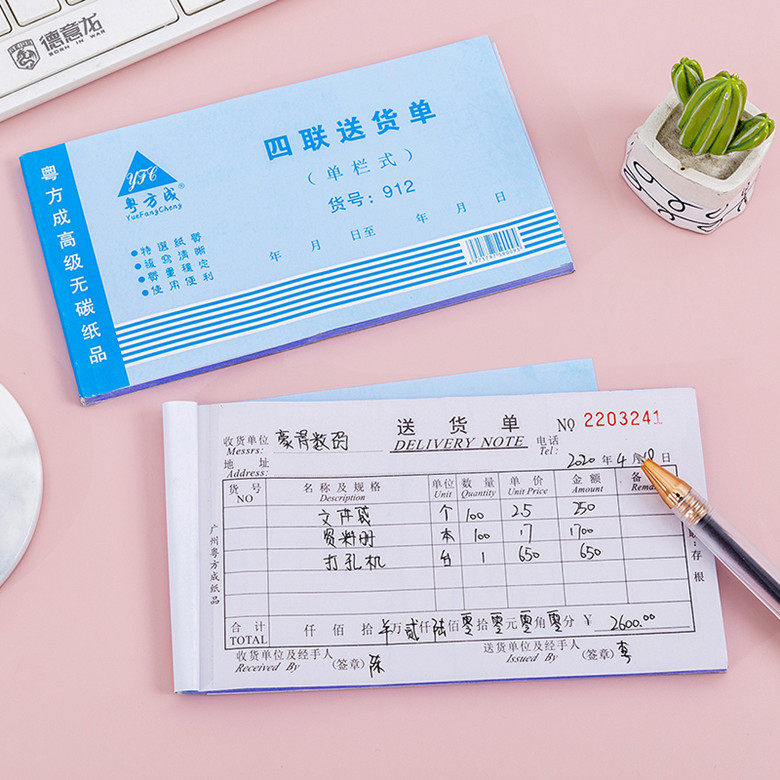 48K single-column delivery list two-part three-link copy delivery note carbon-free copy 20 copies with its own pad sales list delivery list delivery list commodity sales list handwritten thickened