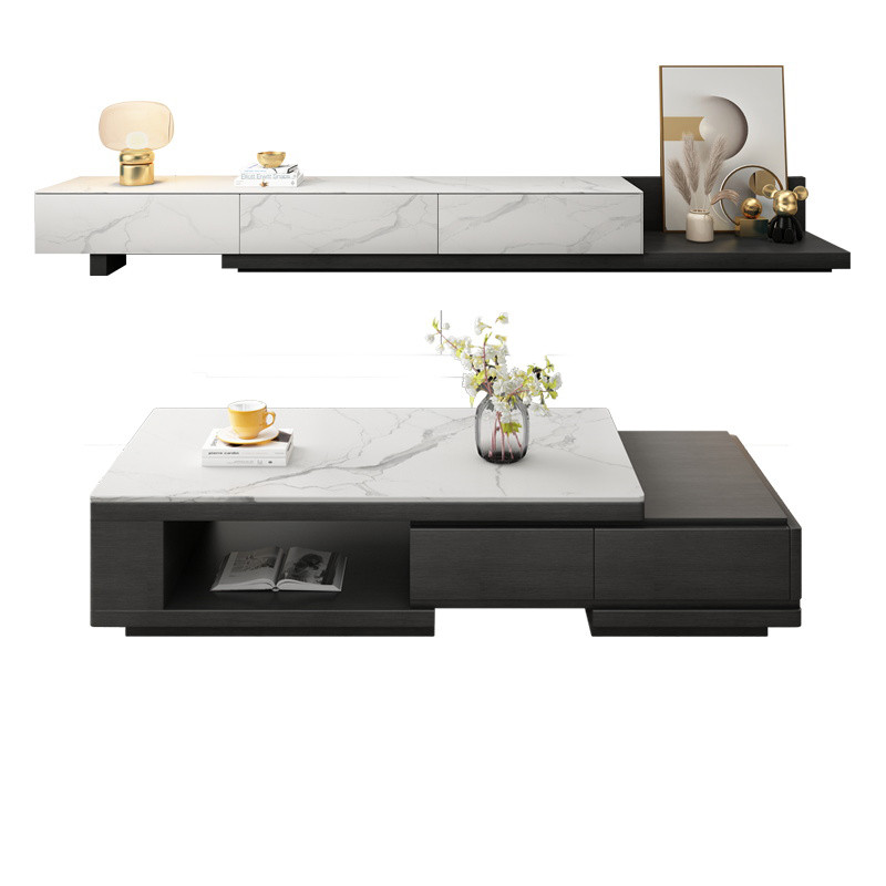 Nordic light luxury slate TV cabinet coffee table combination simple modern floor cabinet small apartment home living room TV cabinet