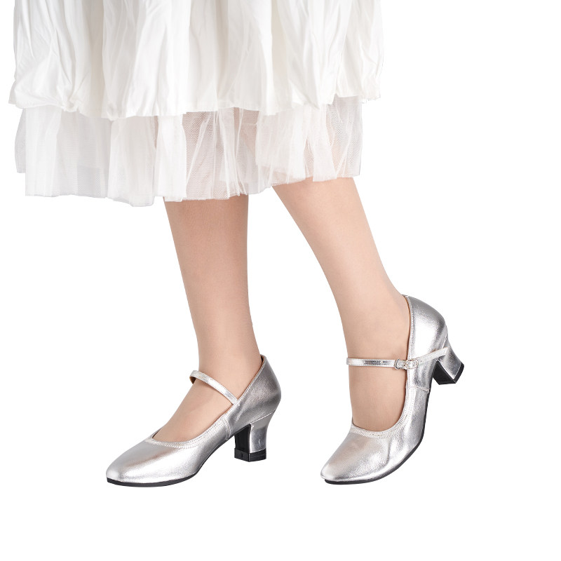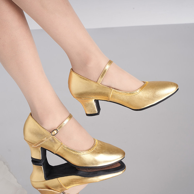 Xinjiang Square Dance Pure Cow Leather High Quality Non-slip Bottom With Silver Color Golden Genuine Leather Lady Performance Dance Shoes