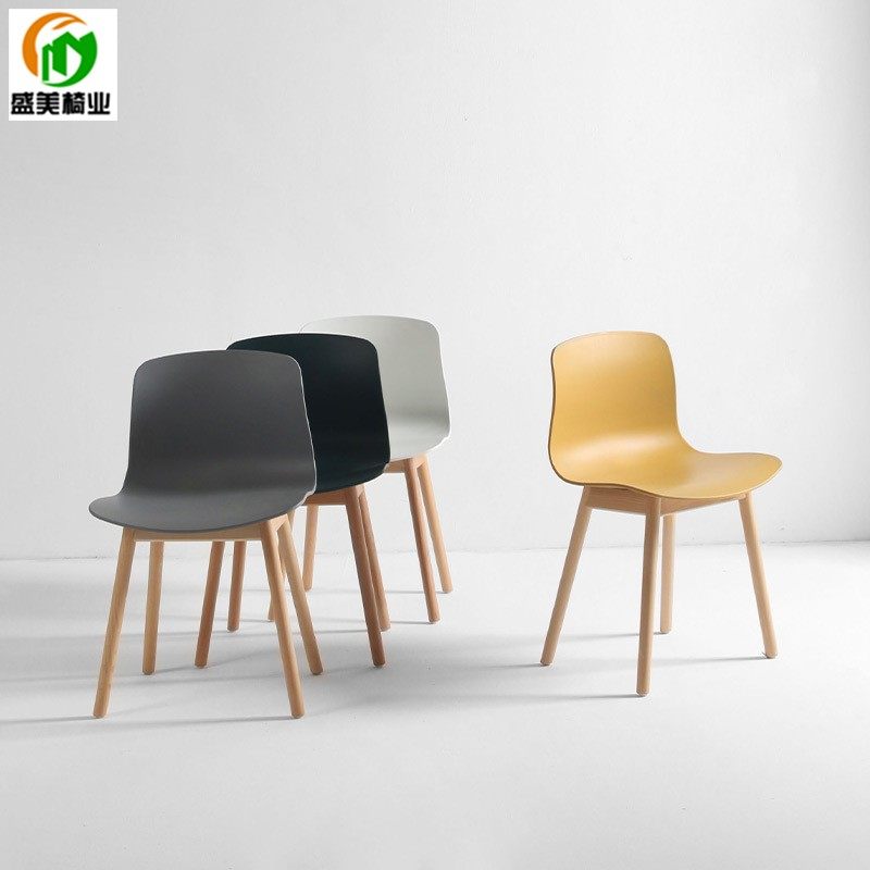 White Dining Room Chair Oak Foot Book House Office Chair Nordic Home small family dining chair Plastic seat Mind reception chair