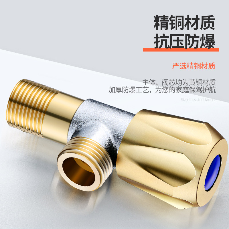 Triangular valve full copper cold and hot water valve 4 points switch Home 304 stainless steel tee-in-two out of water splitting valve