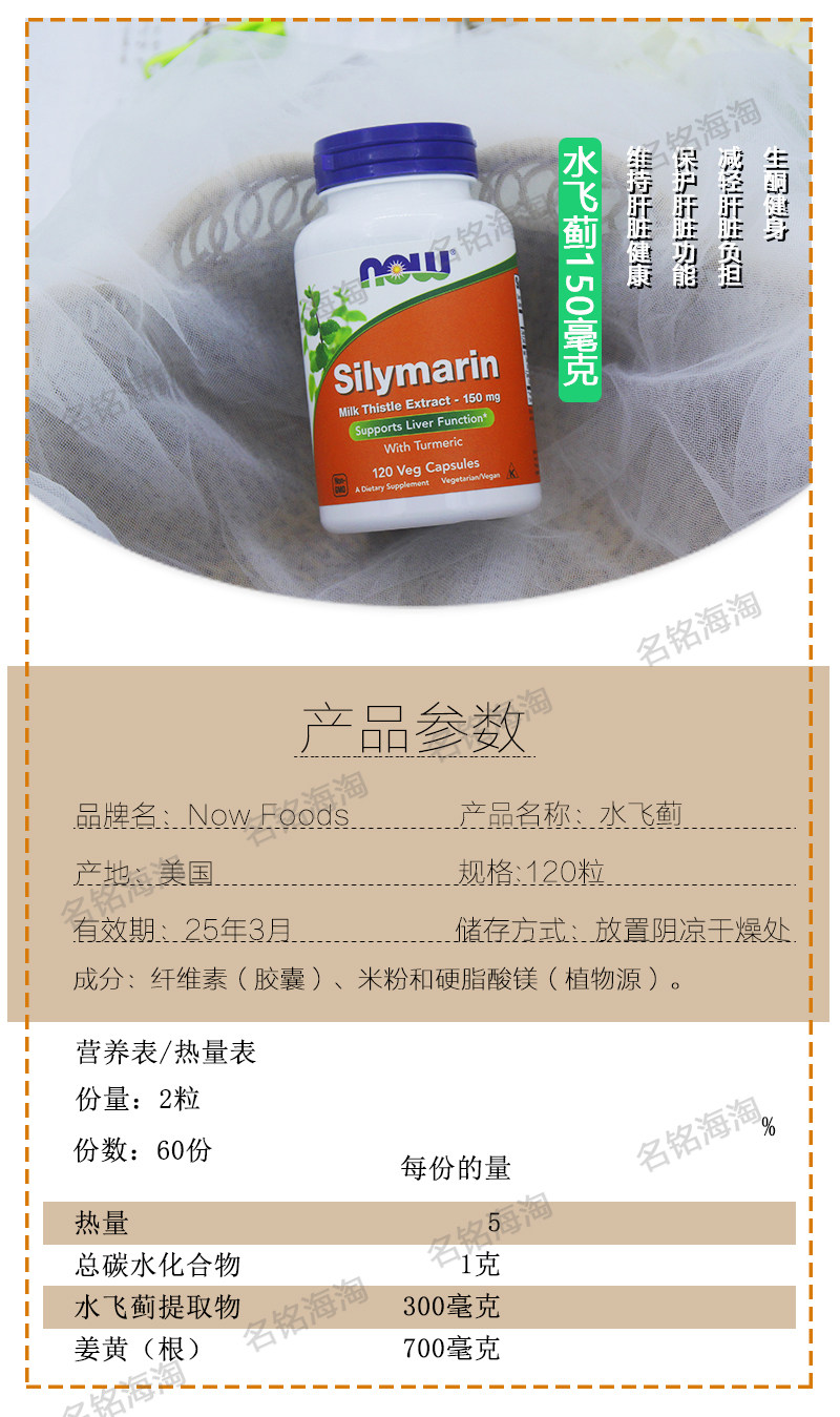Spot NOW Water Flying Thistle Capsule Milk Thistle Grass Tablets Antialcoholic Liver Sheet Thinning Liver and Staying With 120 Grains Fitness