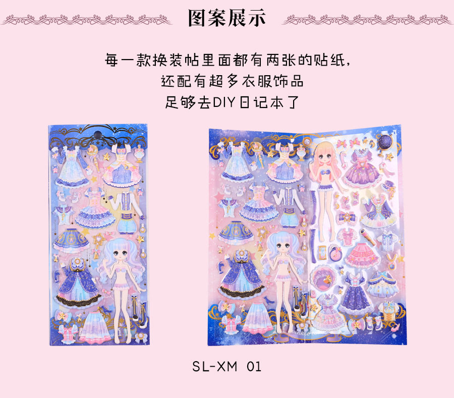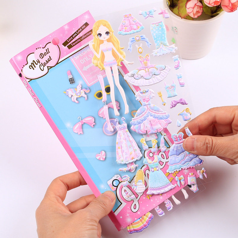 Child Girl Cartoon Bubble with Princess Changed Dress Sticker Premium Sponge Solid Girl Swap for Painting Toys