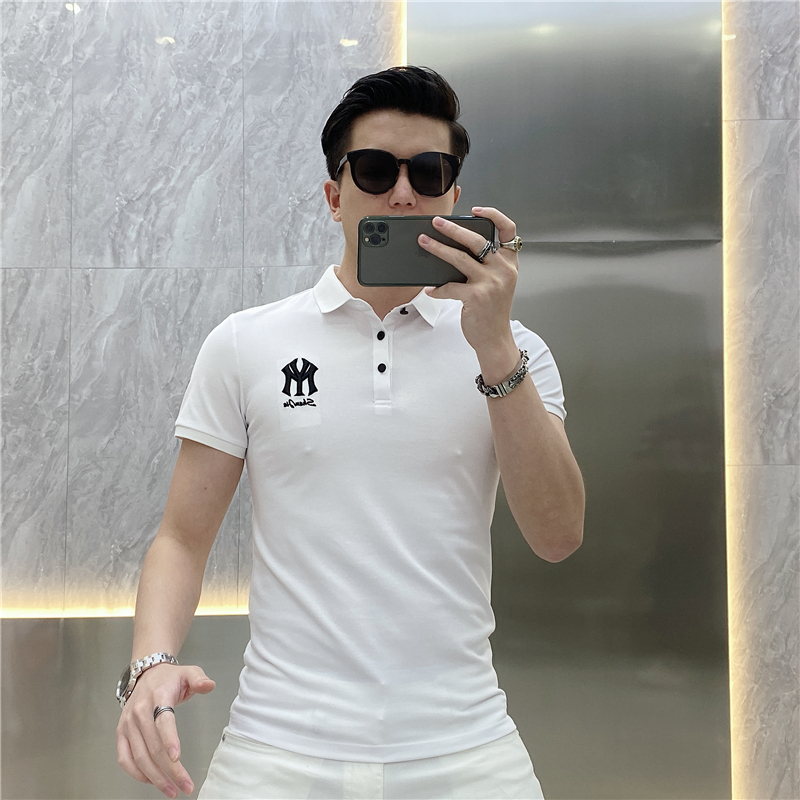 2021 Summer minimalist POLO shirt male fashion personality Korean version online red letter embroidery turnover T-shirt with short sleeve T