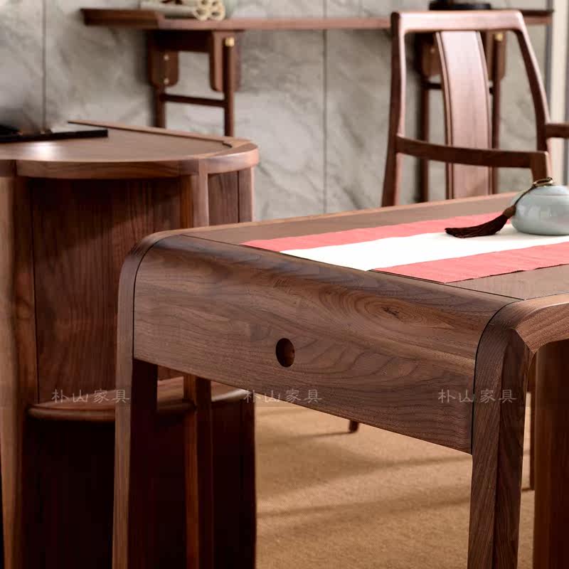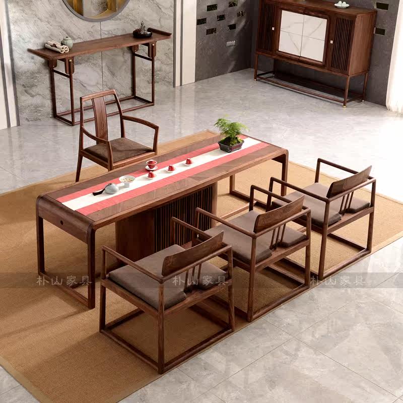 New Chinese style solid wood tea table and chairs Modern Kung Fu tea walnut simple tea room tea table Tea room tea space furniture