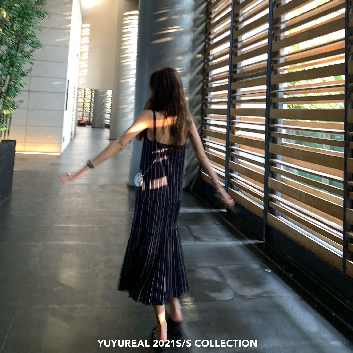YUYUREAL-(30% off for a limited time) temperament long version blue and white striped pleated fishtail suspender dress women's summer