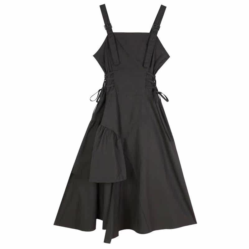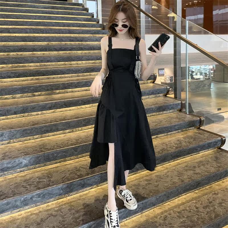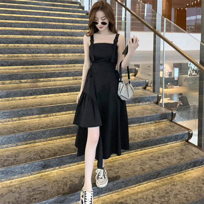 VOGCHAR black sling Hepburn style design dress 2021 new temperament irregular French summer