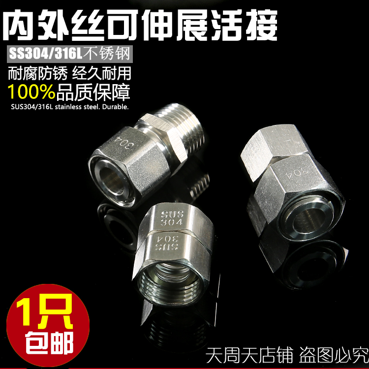 304 stainless steel material 4 points inner and outer wire live connection can be stretched double inner wire extension water meter telescopic movable joint