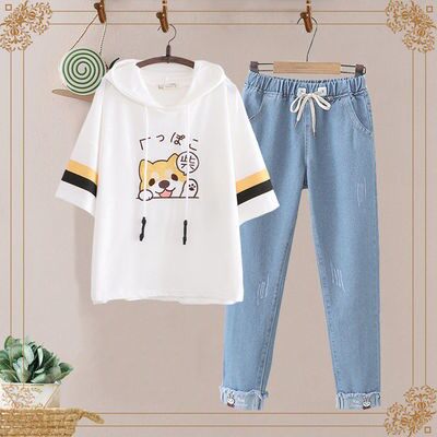 Junior high school students 12-16 years old girl short-sleeved T-shirt loose Korean version cute 13 high school cotton summer suit