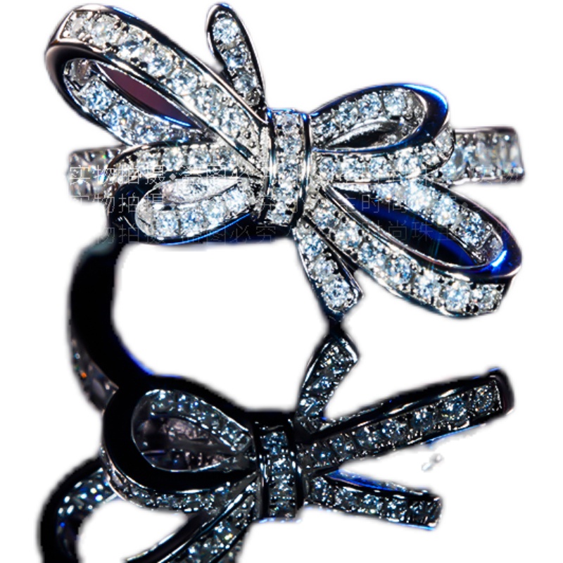 18K platinum ring butterfly knot ring female personality wave platinum mosanstone drilling wedding ring girlfriend begging for wedding gift