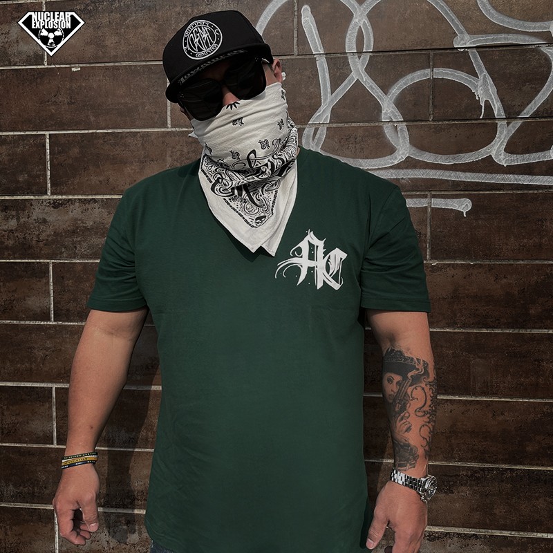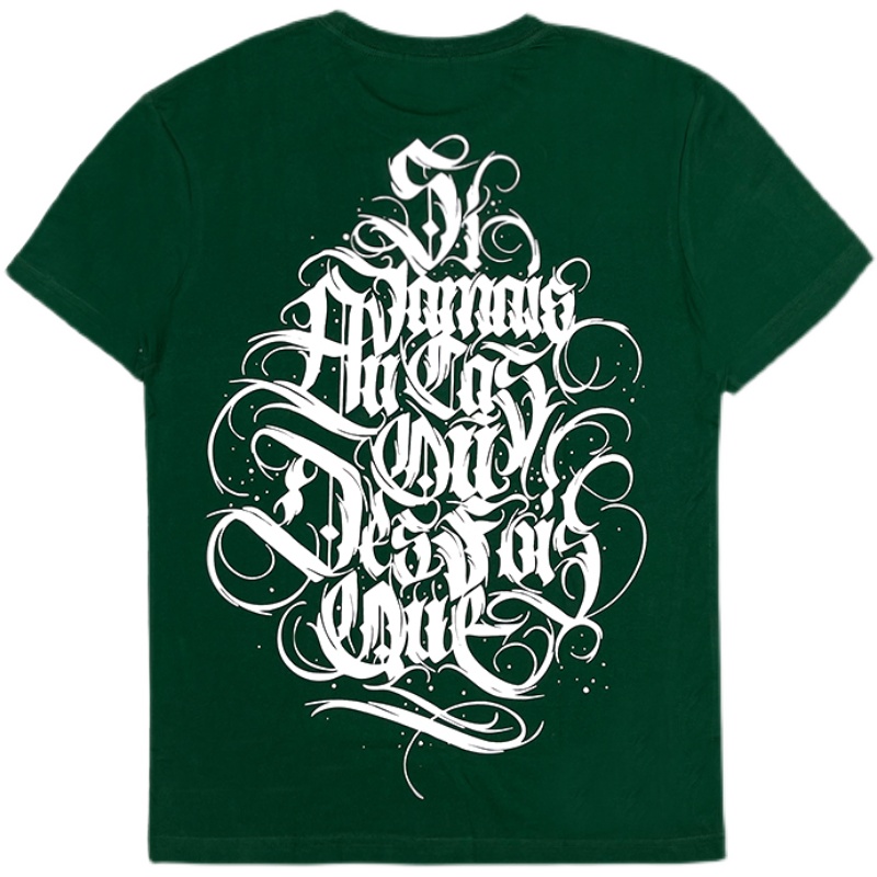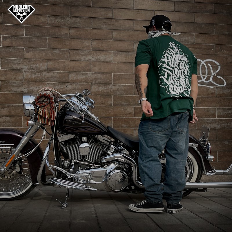 Nuclear Explosion Tide Card West Coast Style Chicano Floral Body Character Full Back Printed Green Beauty Version Casual Short Sleeve T-shirt