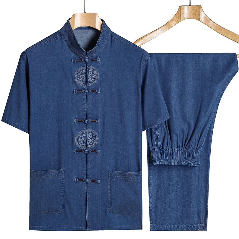 Old man Tang suit Male short sleeve cotton hemp 50 50 60 70 70 old Dad summer clothing suit Grandfather Summer clothes slim fit