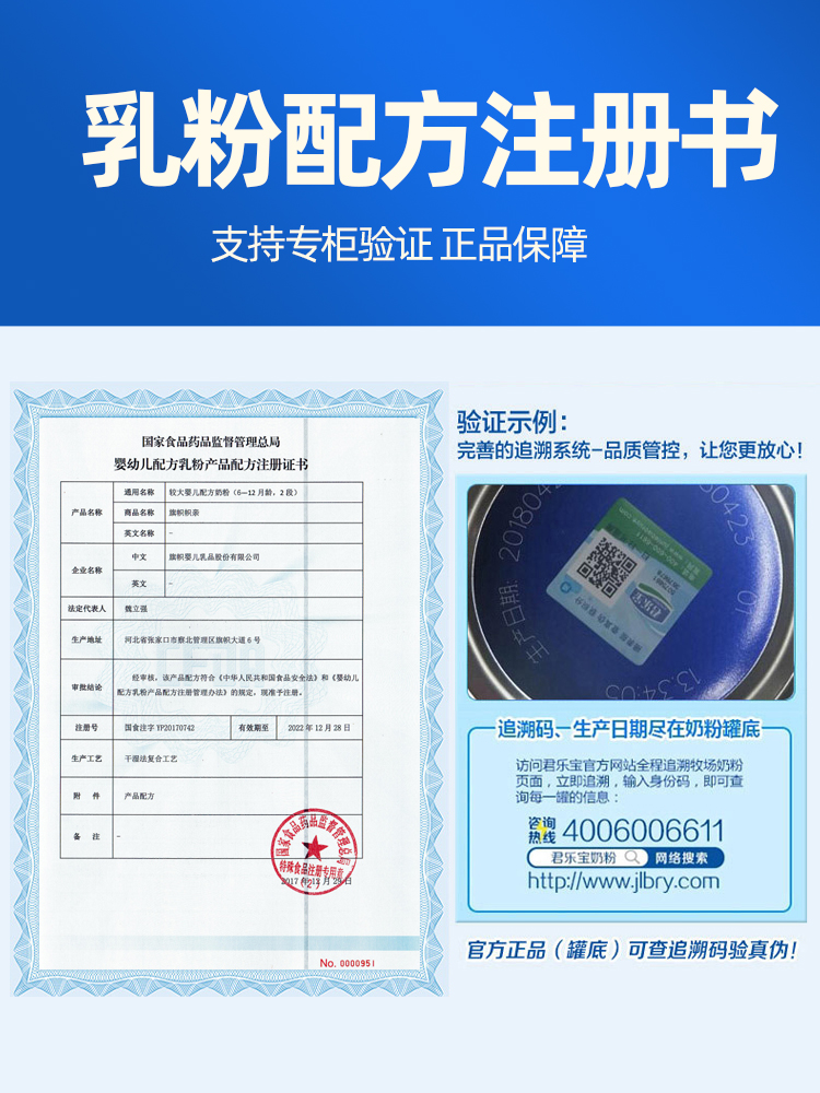 Consultation surprise) Junlebao flag milk powder flag parent 2 segment 400g suitable for 6-12 months baby milk powder official website flag