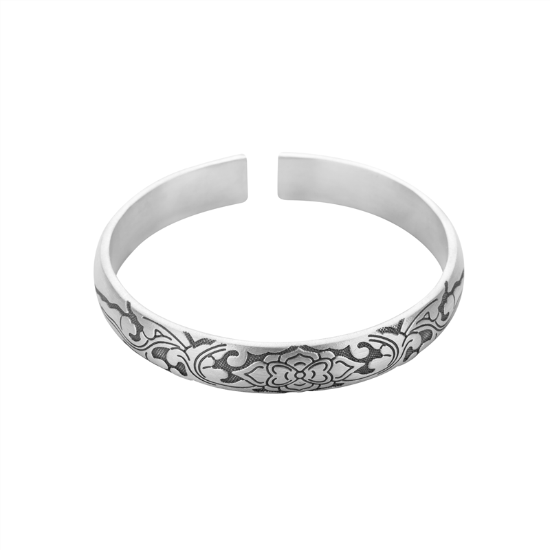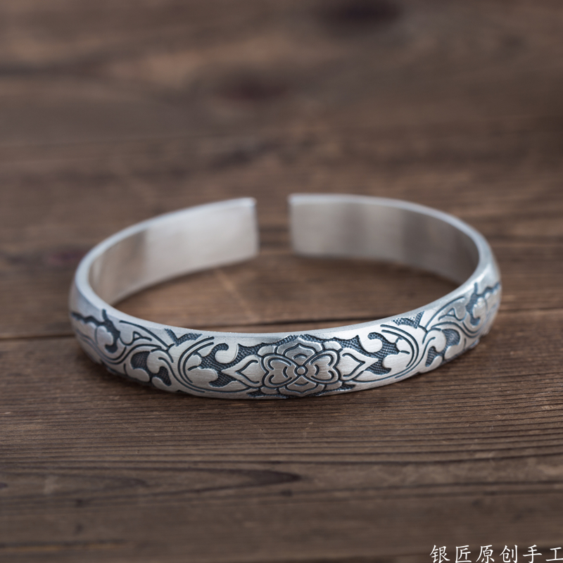Original (flower-like) s999 foot silver bracelet woman pure silver retro country wind minimalist with solid opening mother's section