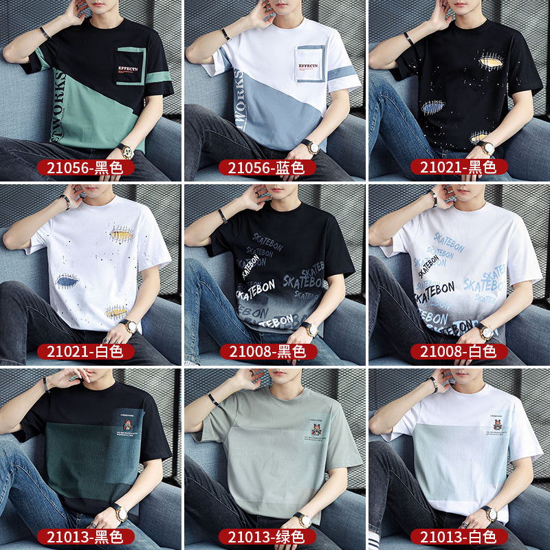 Men's Short Sleeve T - shirt summer 2023 new tide ice wire half - sleeved cotton shirt menswear
