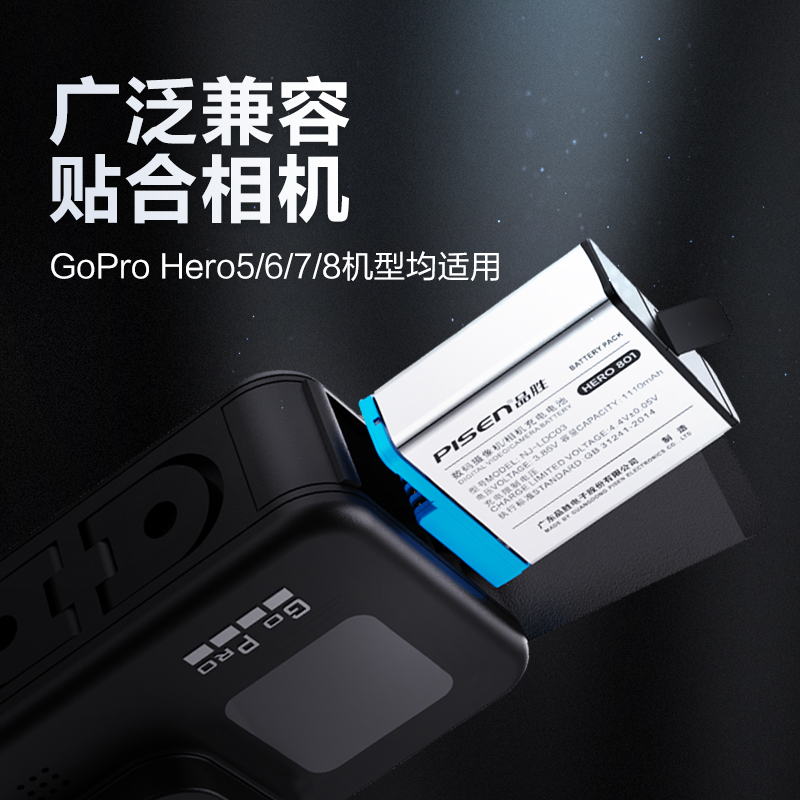Pinsheng gopro8 7 6 5 Battery gopro9 Charger Set Black Dog hero5 6 7 8 9 Action Camera GoPro Camera Battery GoP