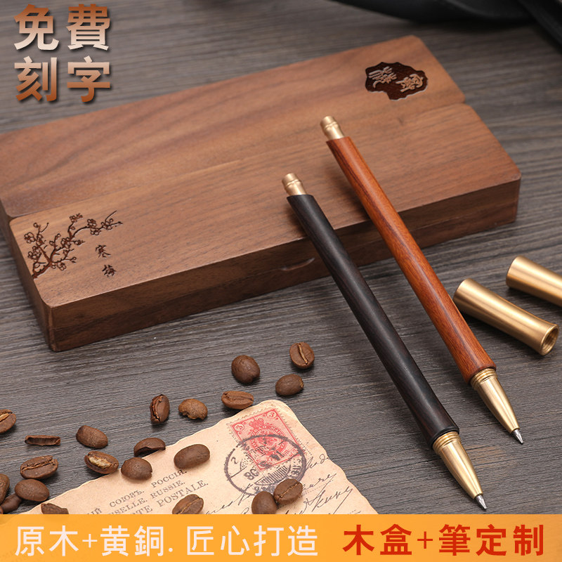 Chinese style classic solid wood gel pen gift box mahogany ebony signature pen log pen high-end practical business gift custom LOGO engraved name commemorative gift for students to send to teachers and classmates