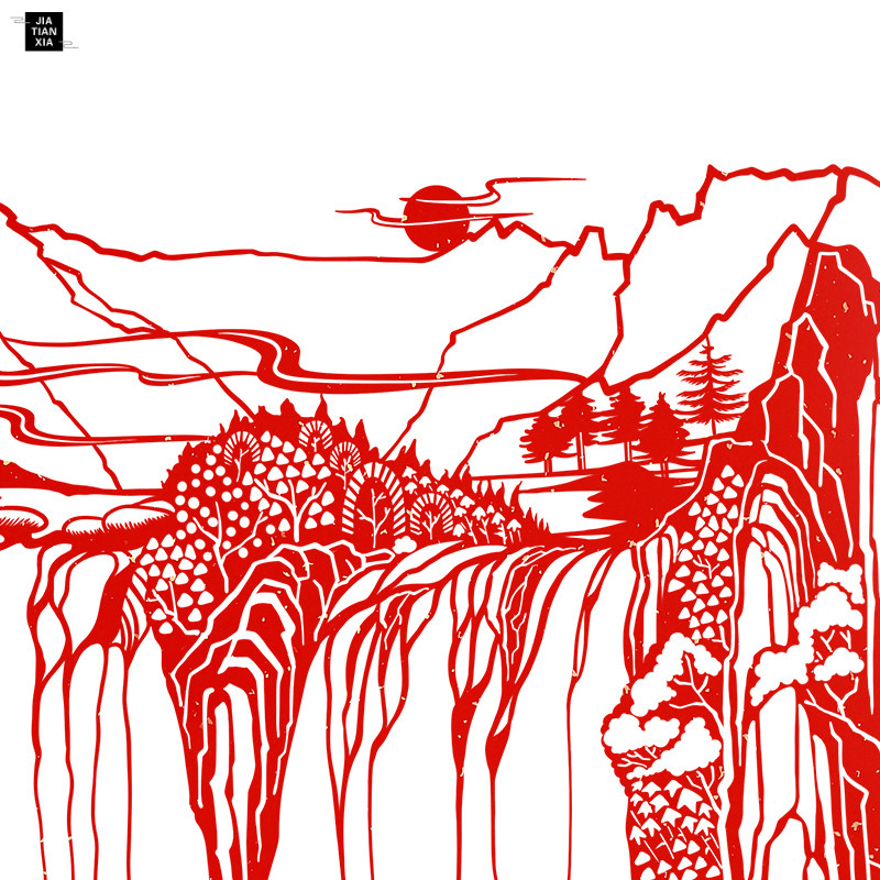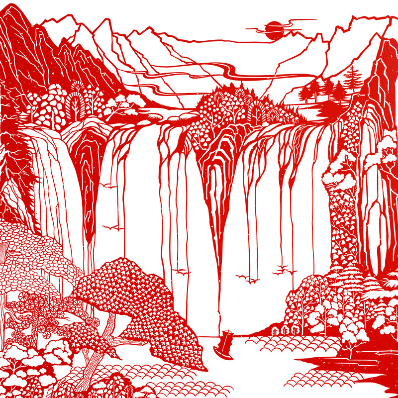 Landscape painting Cut paper Hongyun When Head Rising Sun East Ascending Scenery Decorative framed painting core without frame non-relic handicraft
