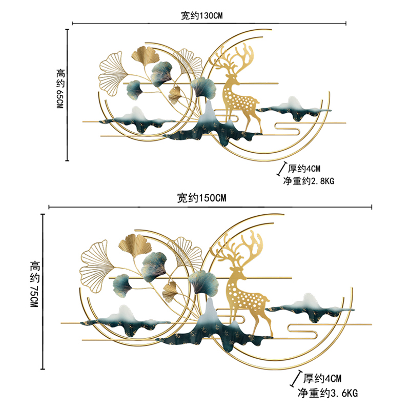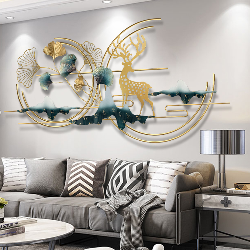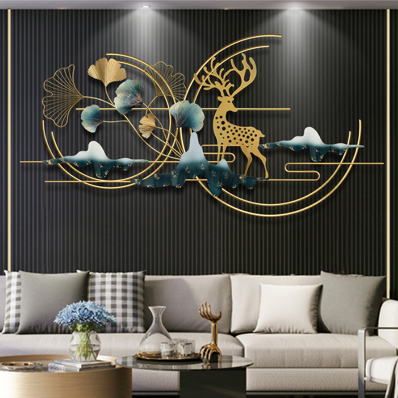 New Chinese living room background wall decoration Wall hanging metal light luxury wall pendant decoration Creative dining room wall hanging decoration