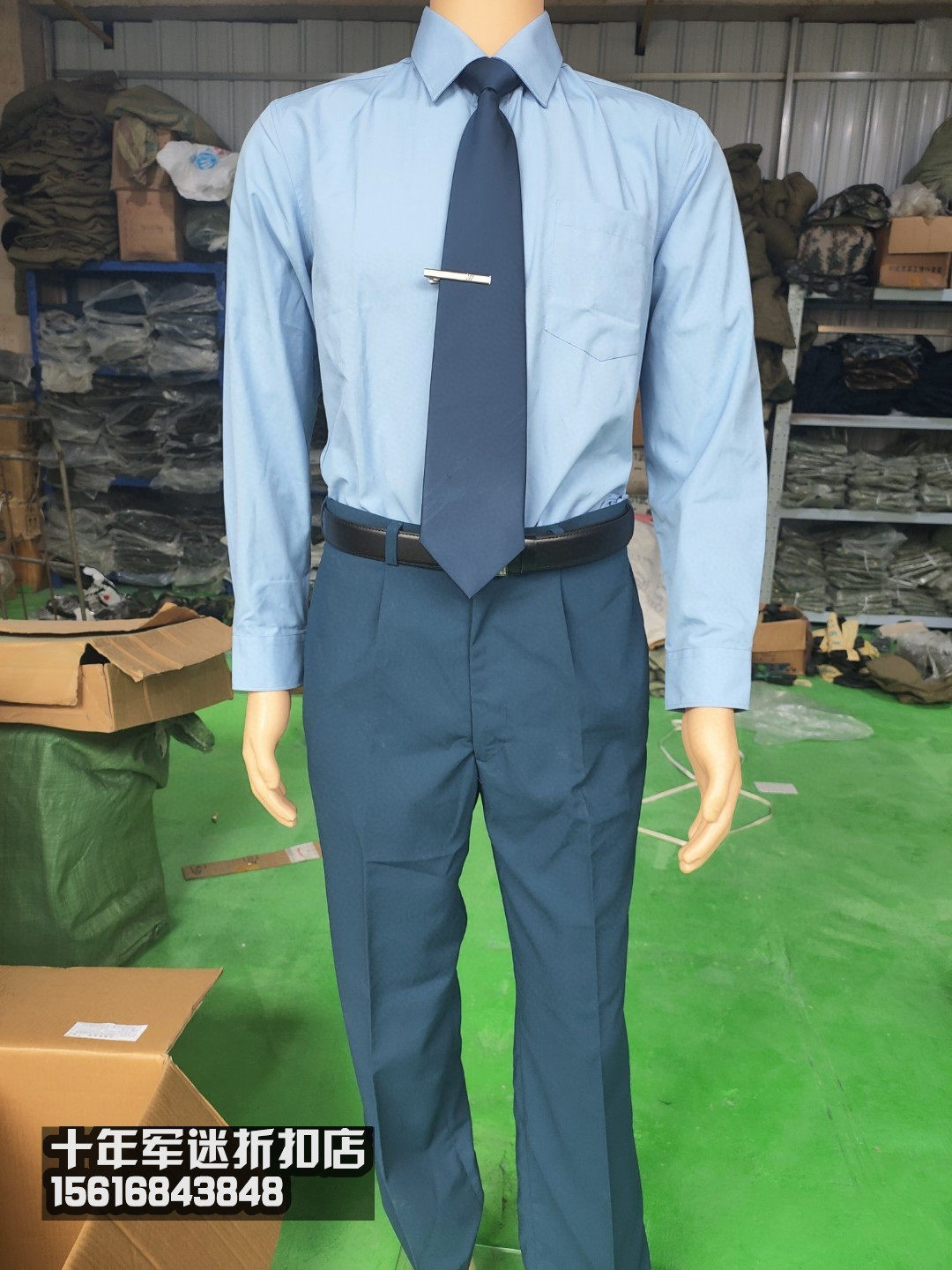 Men's summer long sleeve blue shirt Empty sky blue blue lined army fan blue shirt