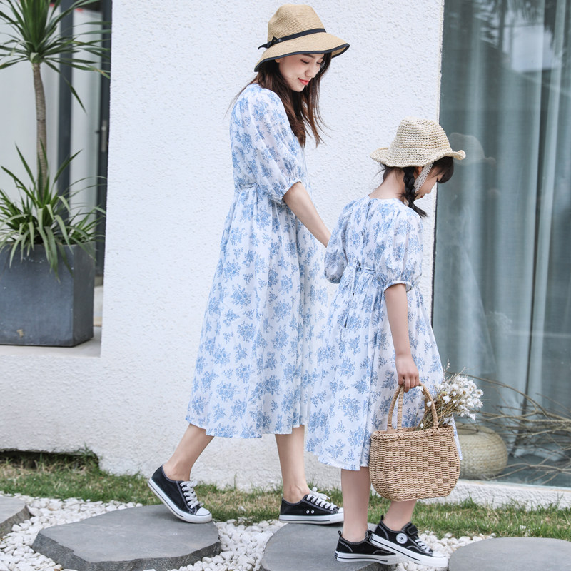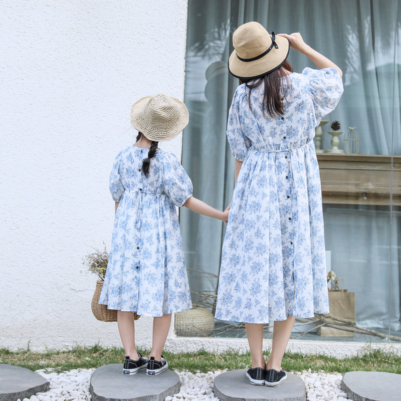 Mother and daughter in a dress.