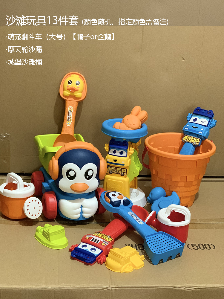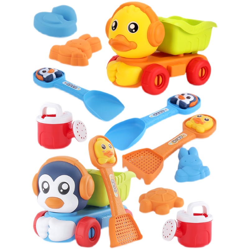 Cute pet duckling penguin soft glue children dig beach pool toy car hourglass shovel cassia child play snow bath and play in water