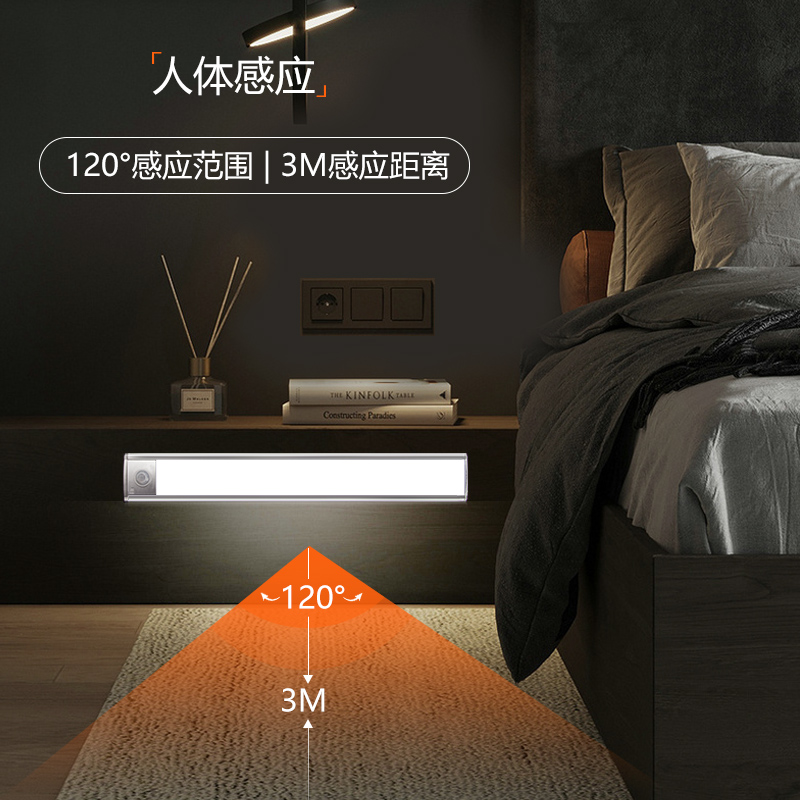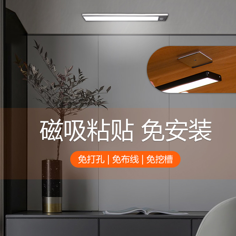 Human intelligent induction lamp with strip wardrobe shoe cabinet wireless self-adhesive kitchen rechargeable LED magnetic suction integral cabinet lamp