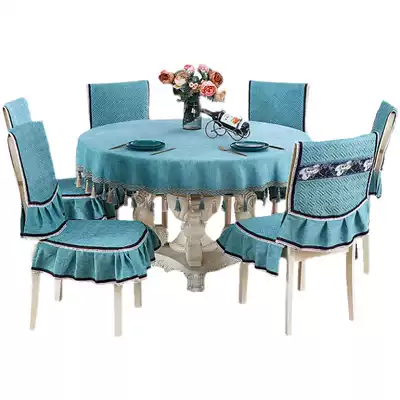 High-end dining table cloth chair cover cover Simple modern round tablecloth chair cover chair cushion set thickened non-slip table and chair cover