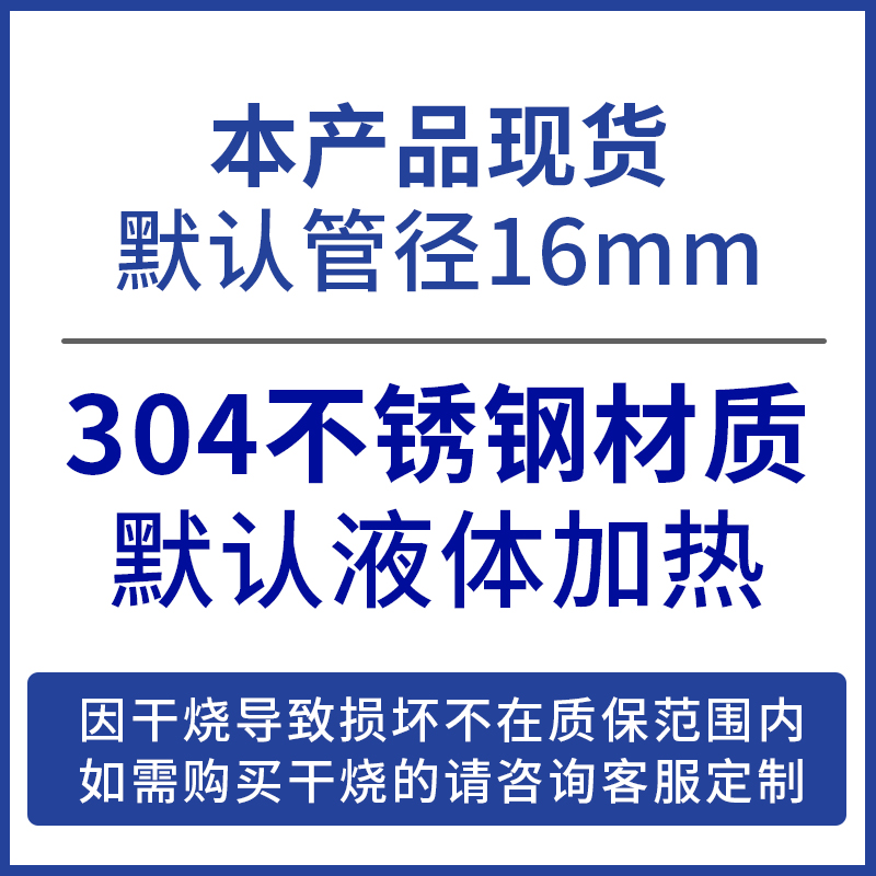 Spot can not be dry-fired, only liquid heating. Large discount. If you need dry-fired, please consult customer service. The following default diameter is 16mm 304 stainless steel. If you need other specifications, please consult.