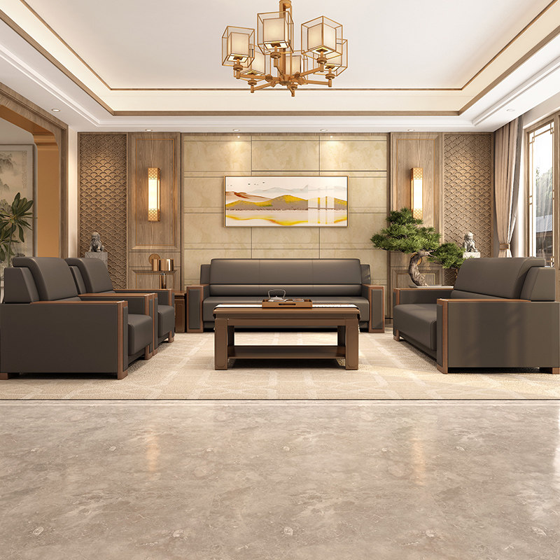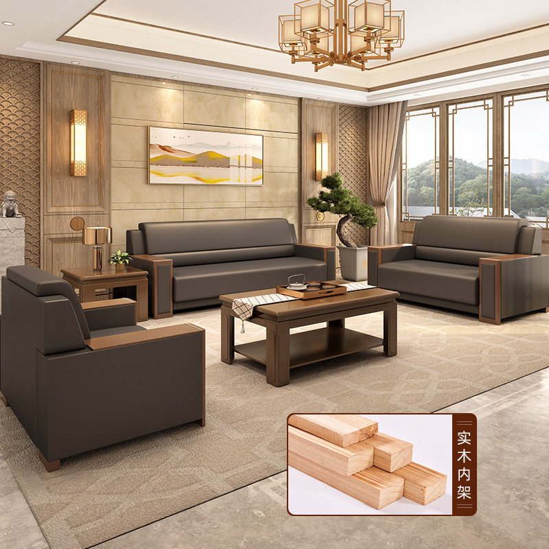 Office sofa leather new Chinese style modern shop business leather conference reception meeting living room manager office furniture