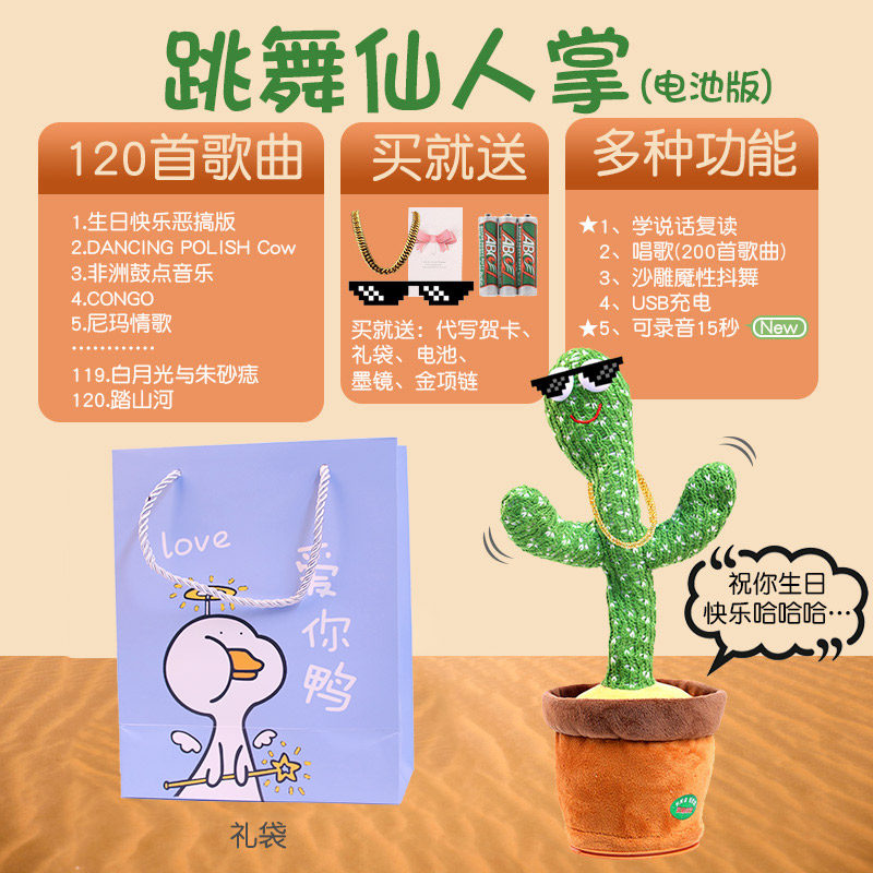 (Deficit Promotion) Charging Pocket Cactus (200 song-learning speaking recording) Charging Money (Gift Bag) Cactus (200 song Learn to speak recording) Remote control (gift bag) (courtesy bag)