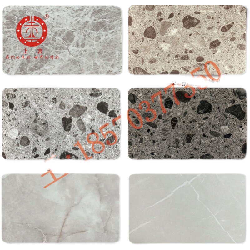 Shanghai auspicious 3D famous wood grain boulder marble grain polished stone anti-scraping ash set wood series high-end aluminum plastic board