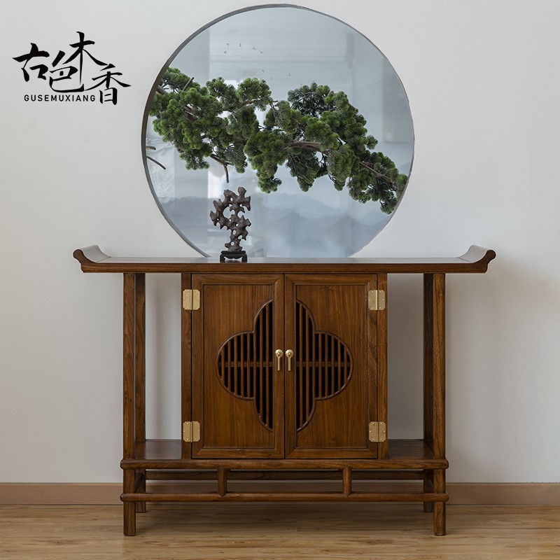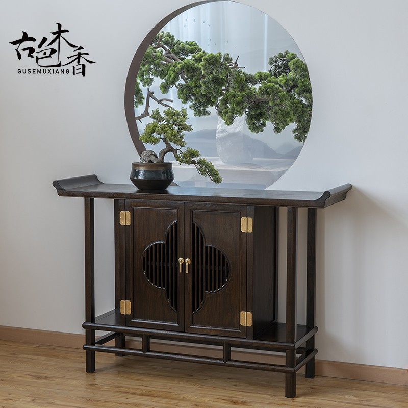 New Chinese style entry porch cabinet solid wood partition antique strip case light luxury porch table hall shoe cabinet against the wall dining cabinet