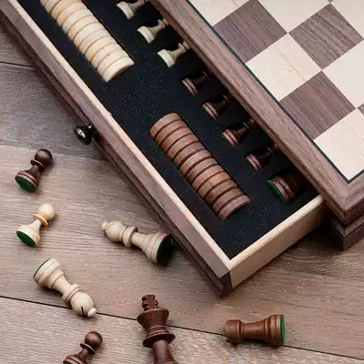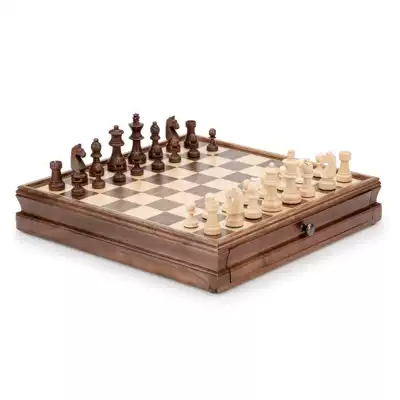 High-quality walnut chess checkers set High-end solid wood chess box drawer WOODEN CHESS