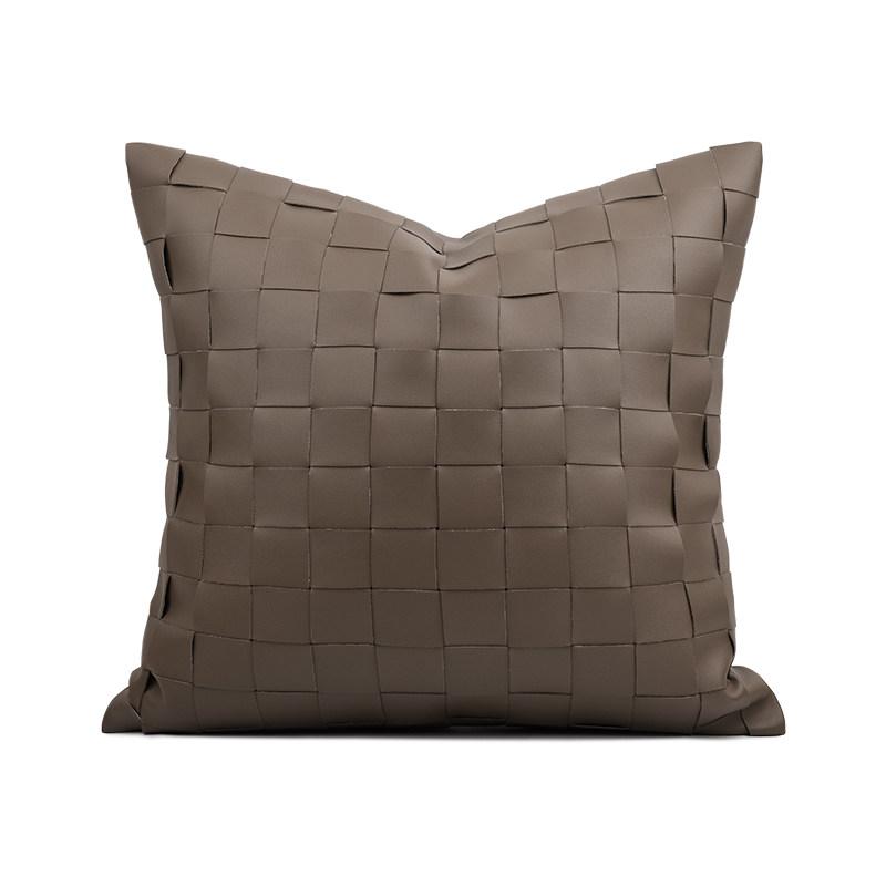 Modern minimalist Nordic-like room Villa With Pillow Bed Pint Living Room Light Lavish Curry Brown Leather Woven Sofa With Pillow