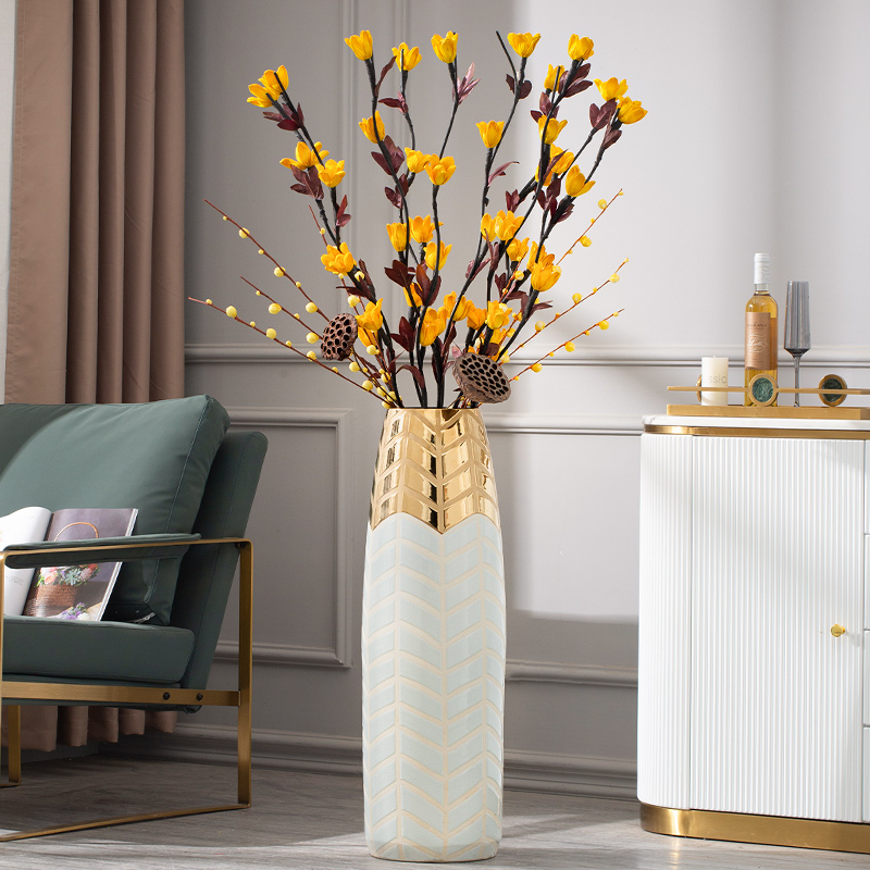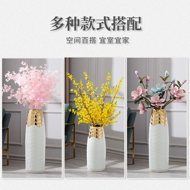 Light luxury floor-to-ceiling large vase large flower arrangement dried flower decoration living room decoration villa Nordic white high-end ceramics