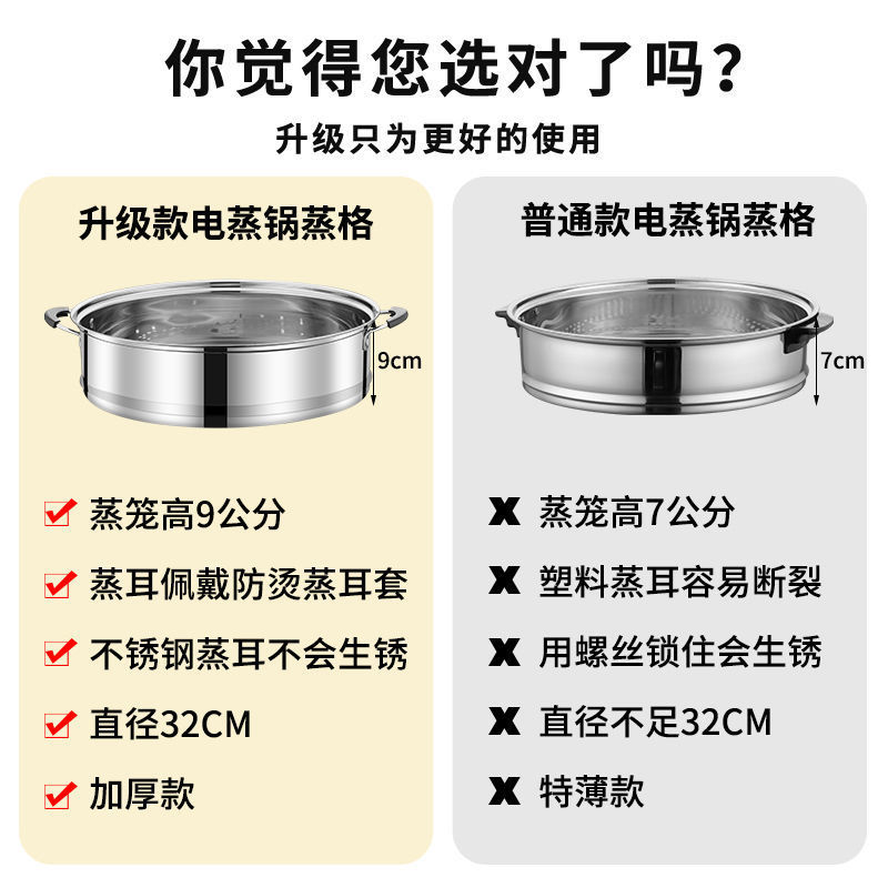 Electric steamer household large-capacity stainless steel multi-functional commercial multi-layer electric steamer cooking steamed buns plug-in hot pot