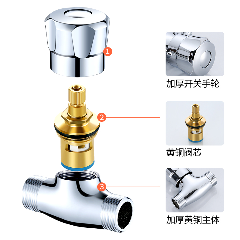 304 stainless steel outer wire faucet valve rotating inner and outer wire household all-copper straight-through angle valve switch 4-point straight valve