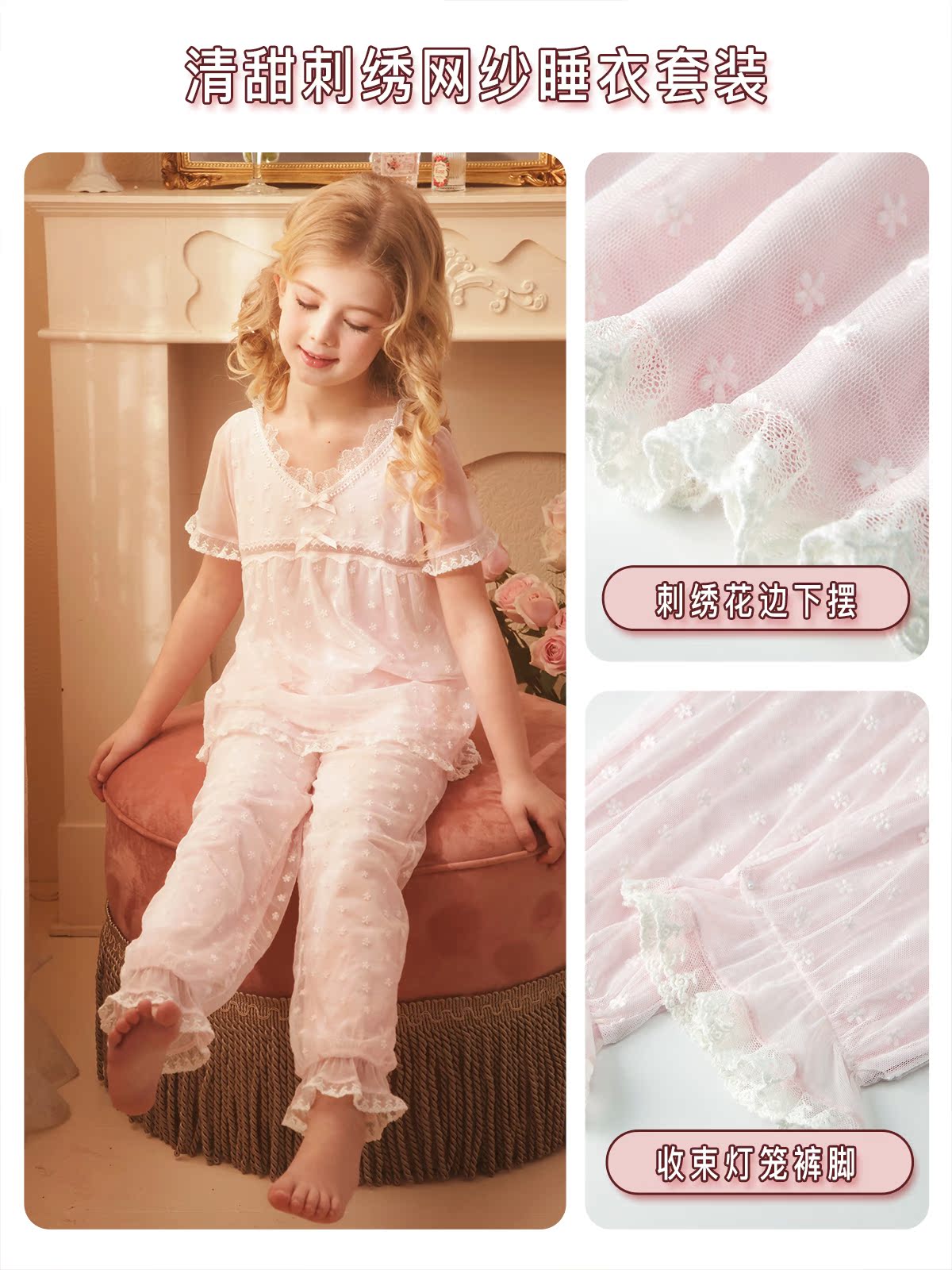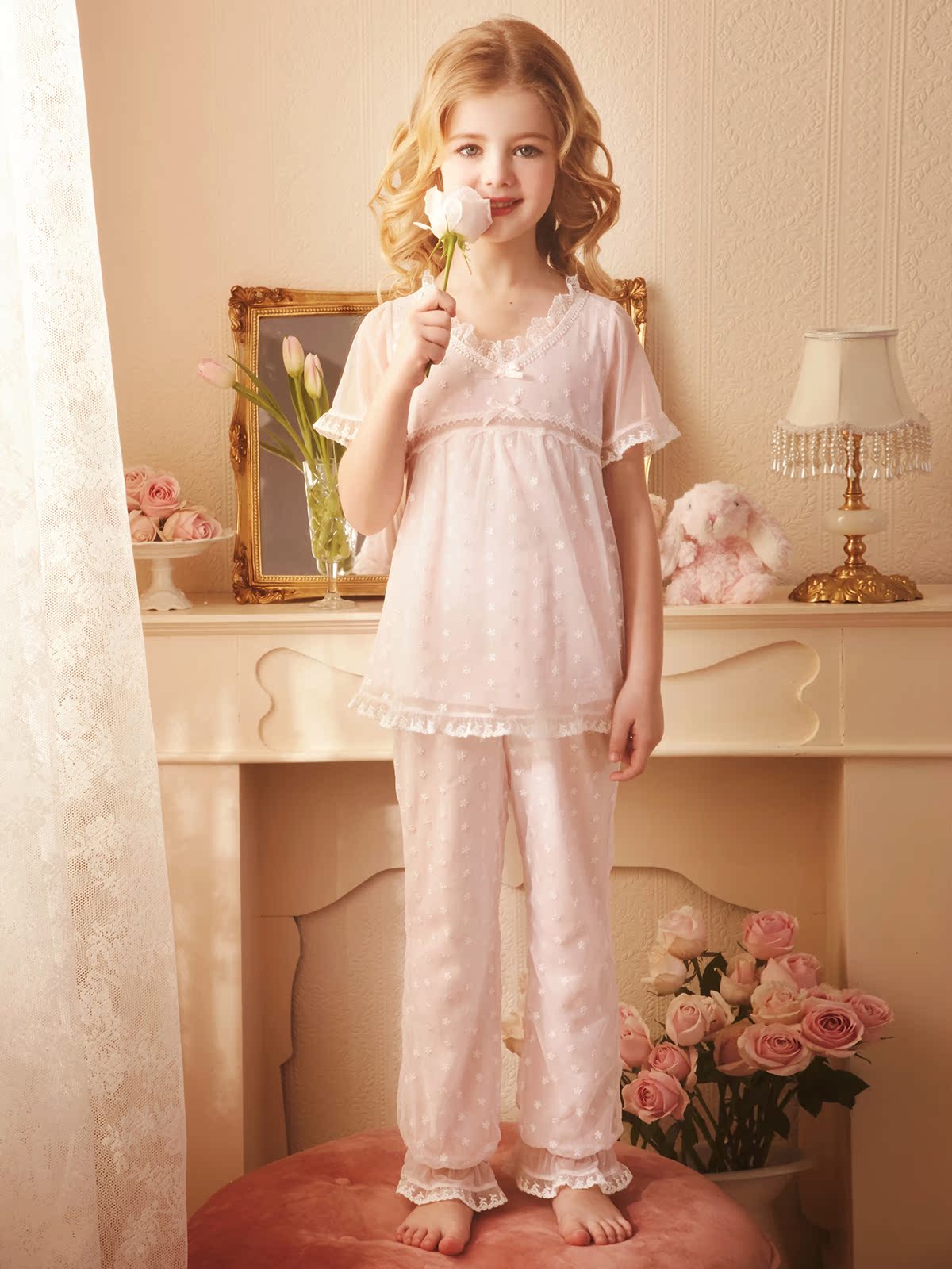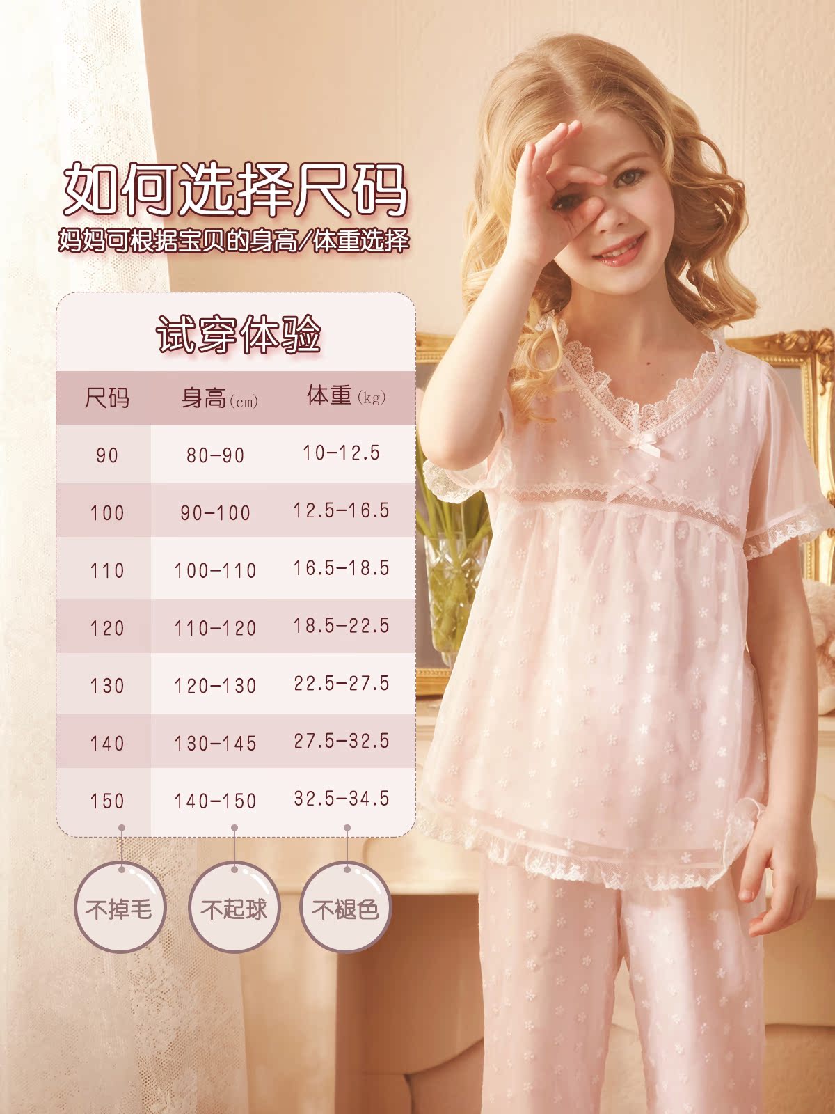 Rosetree girl's pajamas summer palace princess windy cute children's short sleeve suit baby's home suit