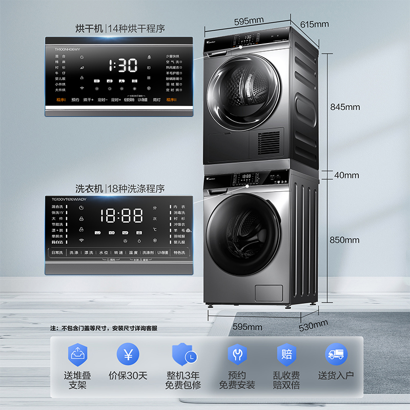 (Raccoon) Small Swagger Home 10kg Heat Pump Wash Suit Drum Washing Machine Dryer Combination 616 06