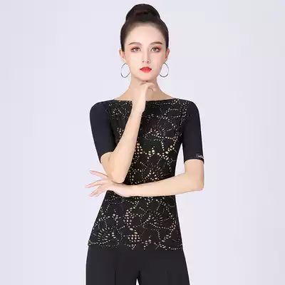 High-end Latin dance clothing 2021 new fashion mid-sleeve national standard dance shirt dance top women's fashionable dance clothing