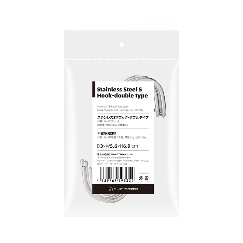 Frost Mountain Japanese-style stainless steel double S-shaped hook 2 installed kitchen bathroom wardrobe free punch S hook metal bifurcated hook