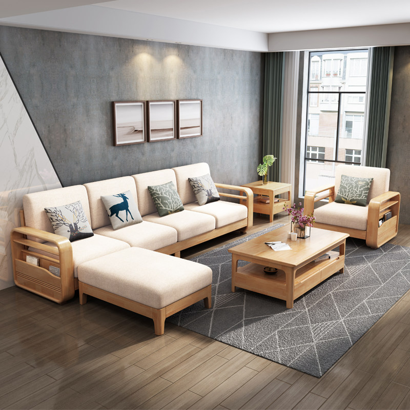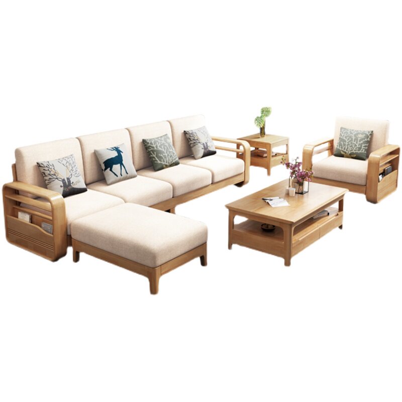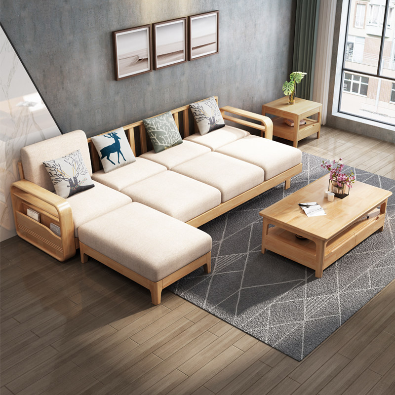 Modern solid wood sofa combination simple style small apartment wood sofa living room home corner sofa with pull bed