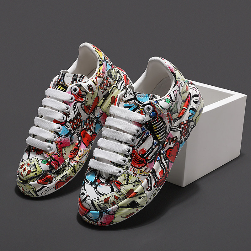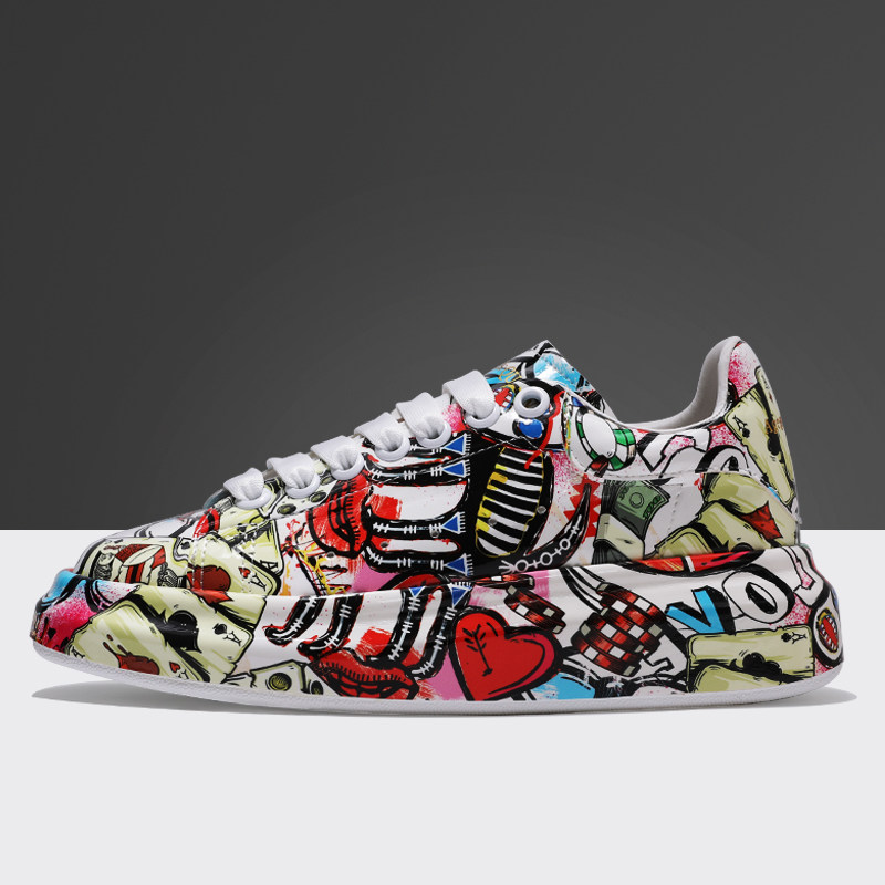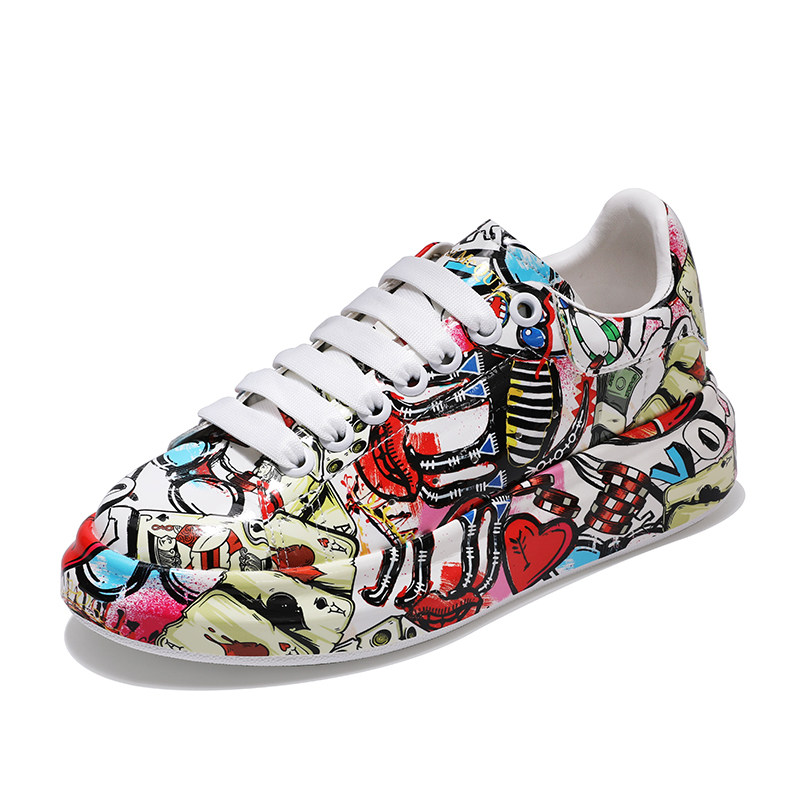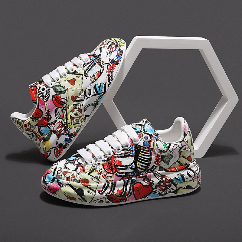 Graffiti personalized shoes women's trendy McQueen white shoes 2021 new thick bottom inner heightening sports casual shoes couple models