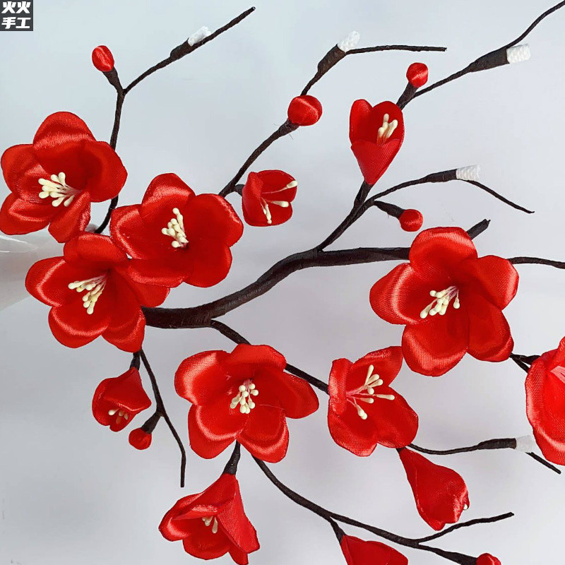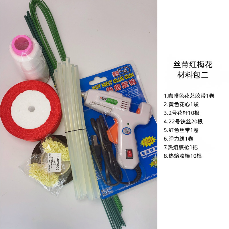 Ribbon Red Plum Blossom Material Pack 2 Contains Glue Gun Glue Stick