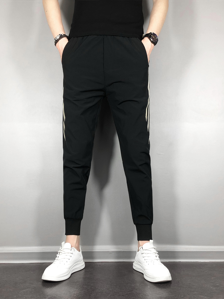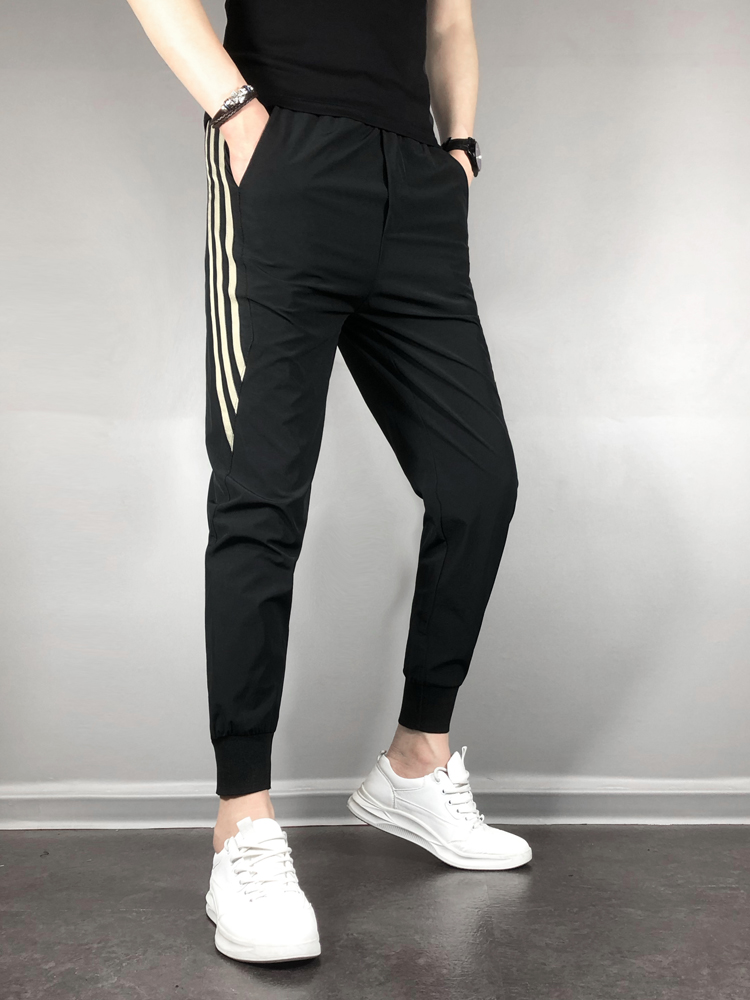 MAROLIO selected trousers men's trendy all-match stretch harem trousers leggings trousers net red striped cropped trousers