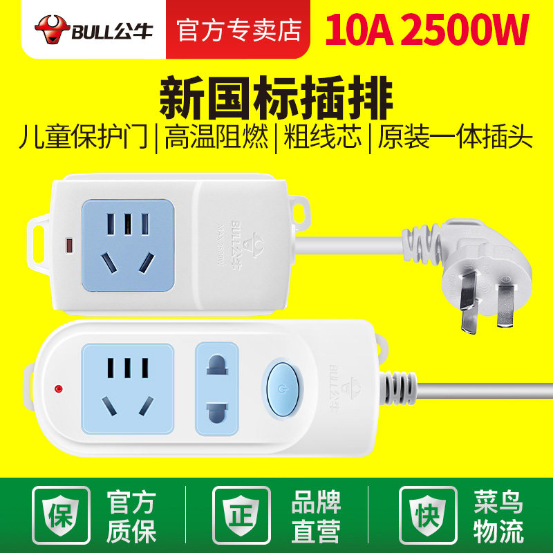 Bulls new national standard multi-purpose socket triangle plug mini plug 0 5m 1m 3m 4m 5m small drag board Bull electrical flagship store official flagship official website same model